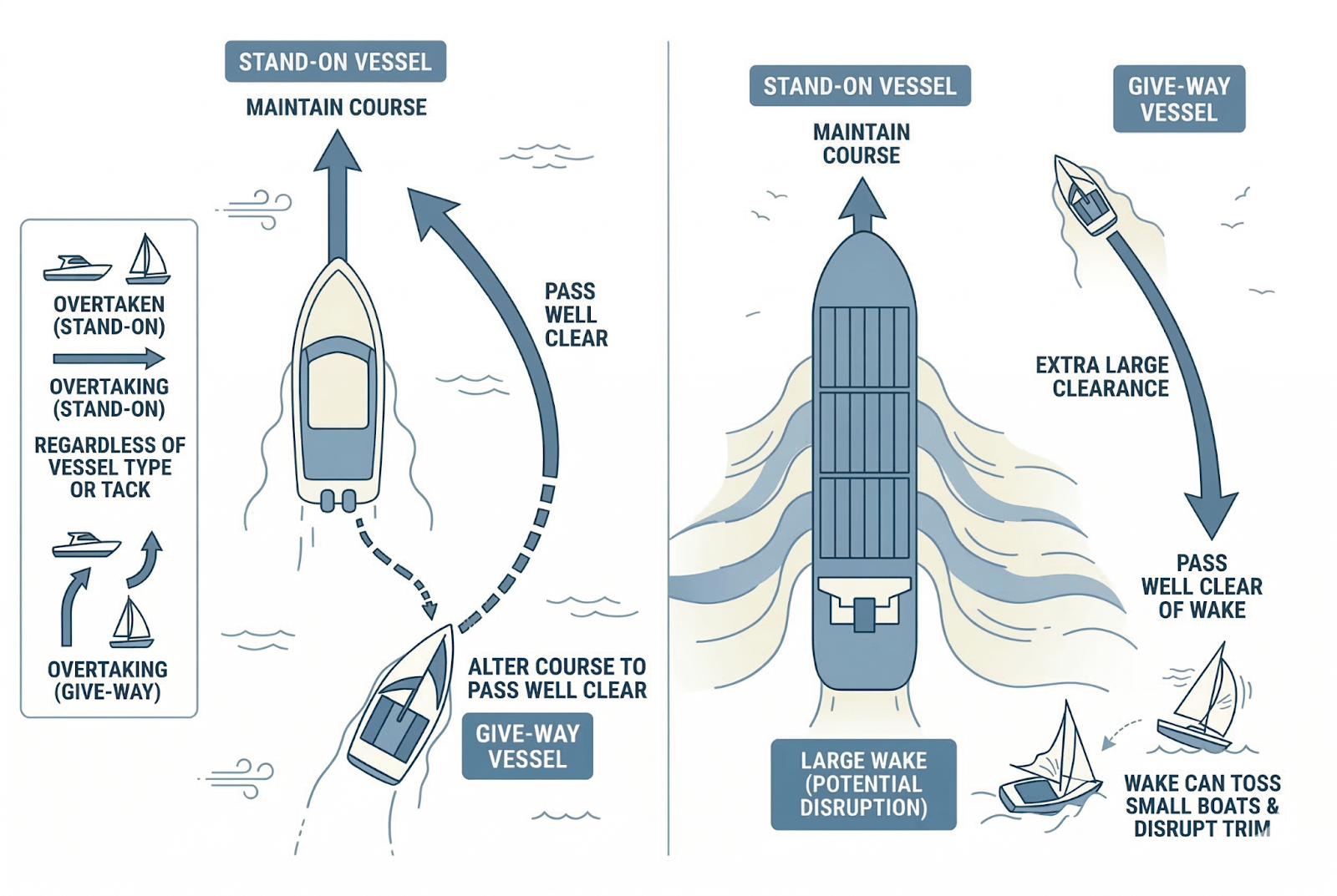 - Make course changes big and obvious so other vessel operators can tell what you're planning.